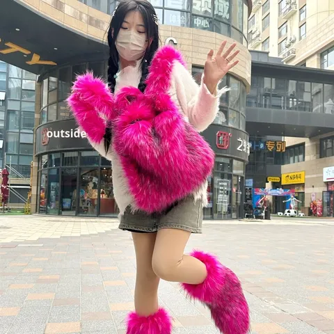 Nuevo bolso de felpa de conejo Otoño e Invierno versátil de un hombro Y2K Rose Red Millennium Sexy estilo bandolera bolso de estudiante peludo