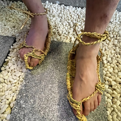 Hecho a mano verano tradicional rojo rendimiento hombres y mujeres puramente tejido Retro Casual zapatillas Natural ratán paja sandalias
